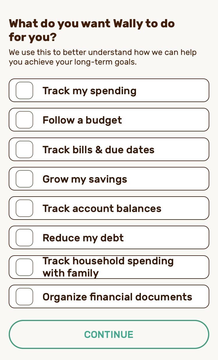 Goal options are offered when you first begin with Wally.