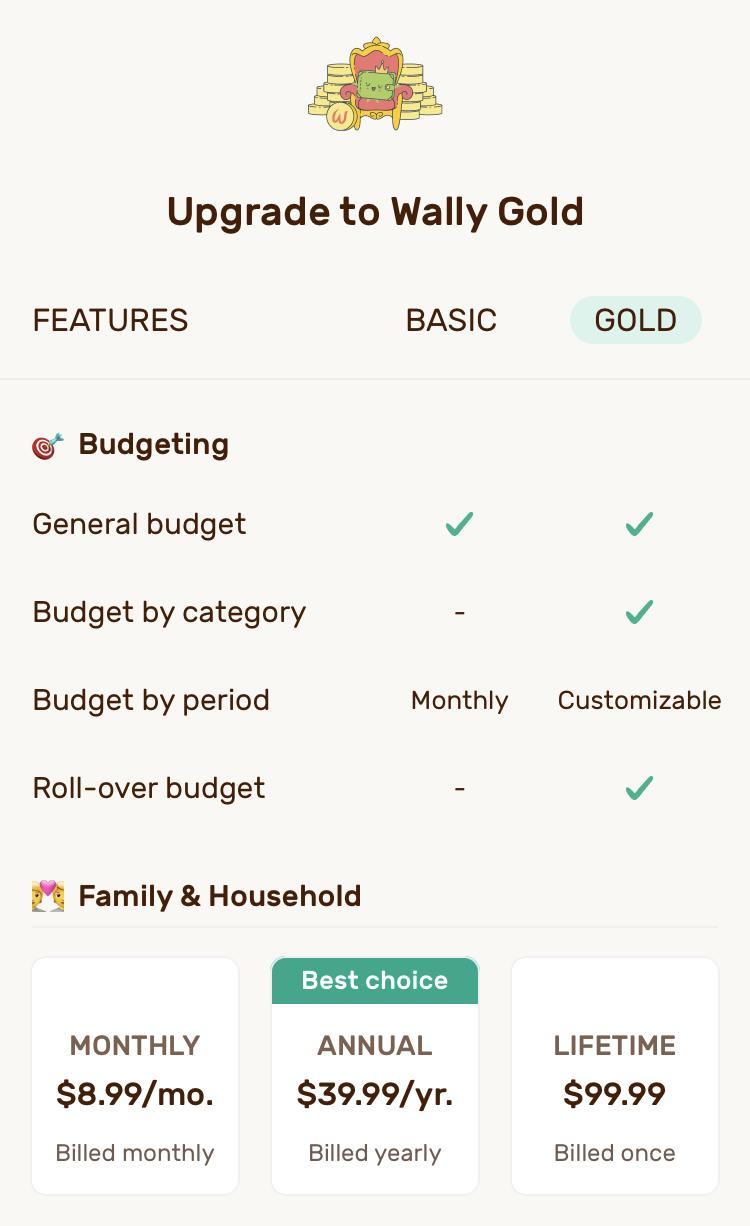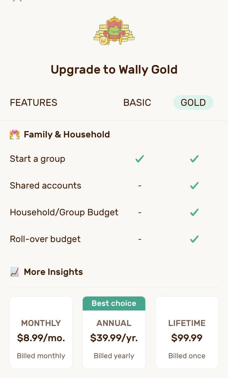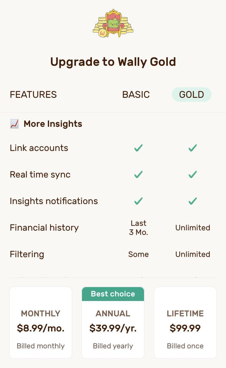 Options offered when/if you upgrade to Wally Gold.
